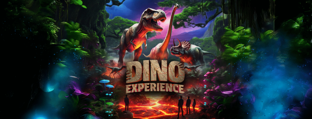 A Dino Experience convida-te a viajar milhões de anos no tempo e a descobrir o mundo fascinante dos gigantes da pré-história.